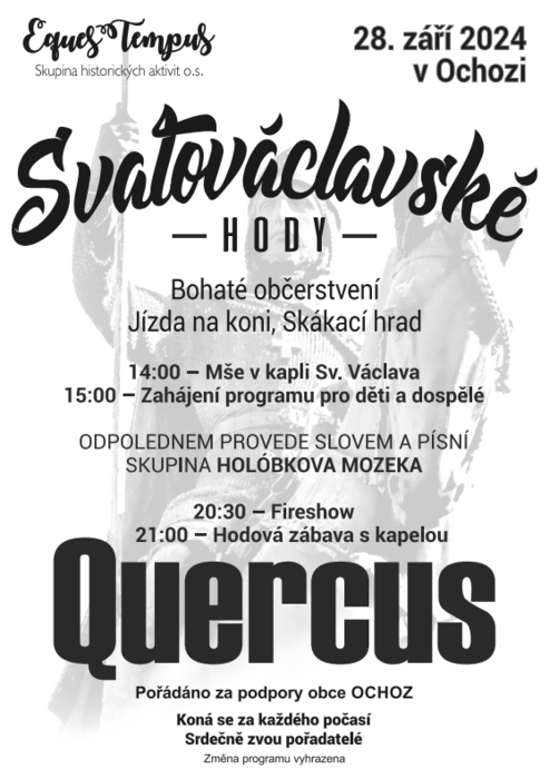 Dne 28. září 2024 v obci Ochoz proběhnou tradiční Svatováclavské hody. Ve 14:00 bude mše svatá v místní kapli sv. Václava. K poslechu a tanci zahraje Holóbkova mozeka a kapela Quercus. Více v příloze.
