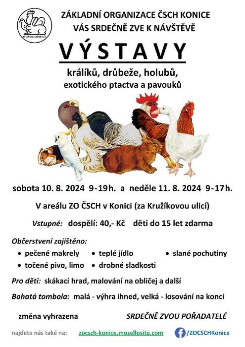 Výstava králíků, drůbeže, holubů, exotického ptactva a pavouků v Konici, viz. příloha.