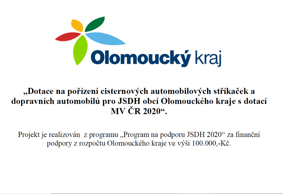 Dotace na pořízení cisternových automobilových stříkaček a dopravních automobilů pro JSDH obcí Olomouckého kraje s dotací MV ČR 2020.