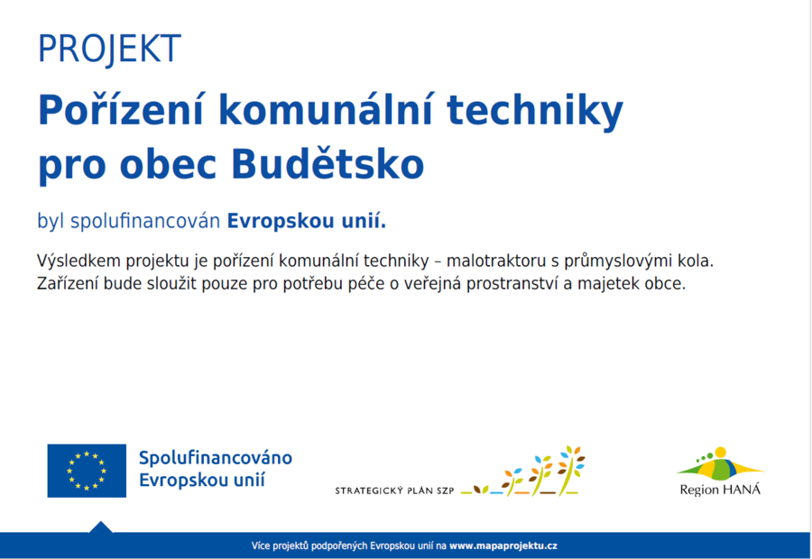 Projekt - Pořízení komunální techniky pro obec Budětsko