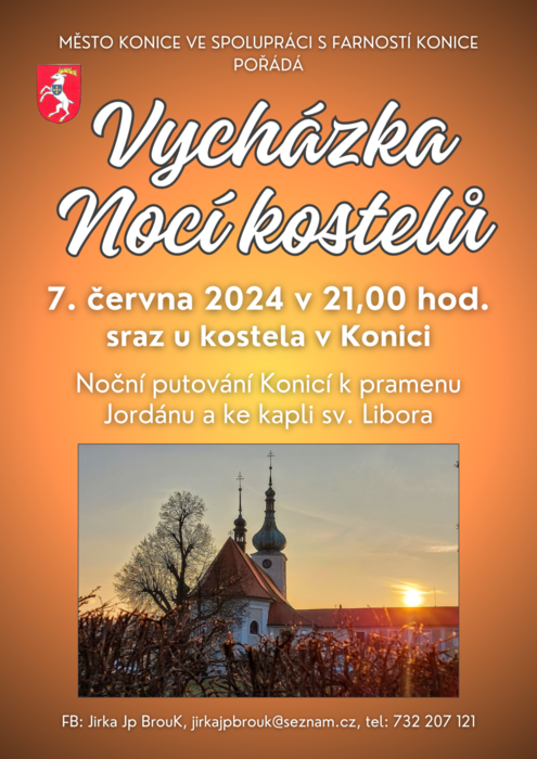 Město Konice a Farnost Konice vás zve v pátek 7.června 2024 na vycházku Nocí kostelů.