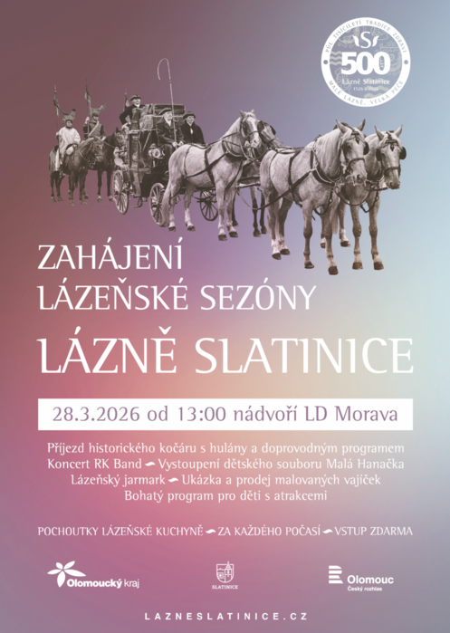 Lázně Slatinice zvou občany v sobotu 28. března od 13:00 hodin na zahájení 500. lázeňské sezóny, na nádvoří lázeňského domu Morava.